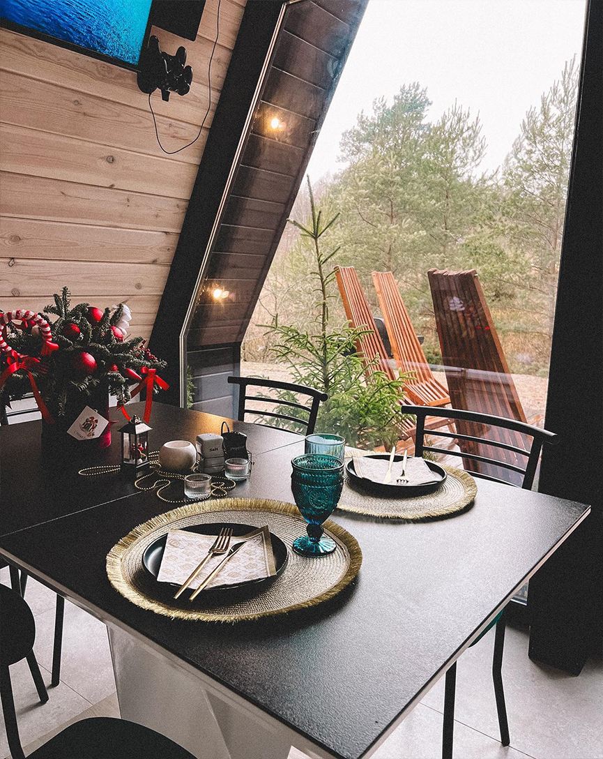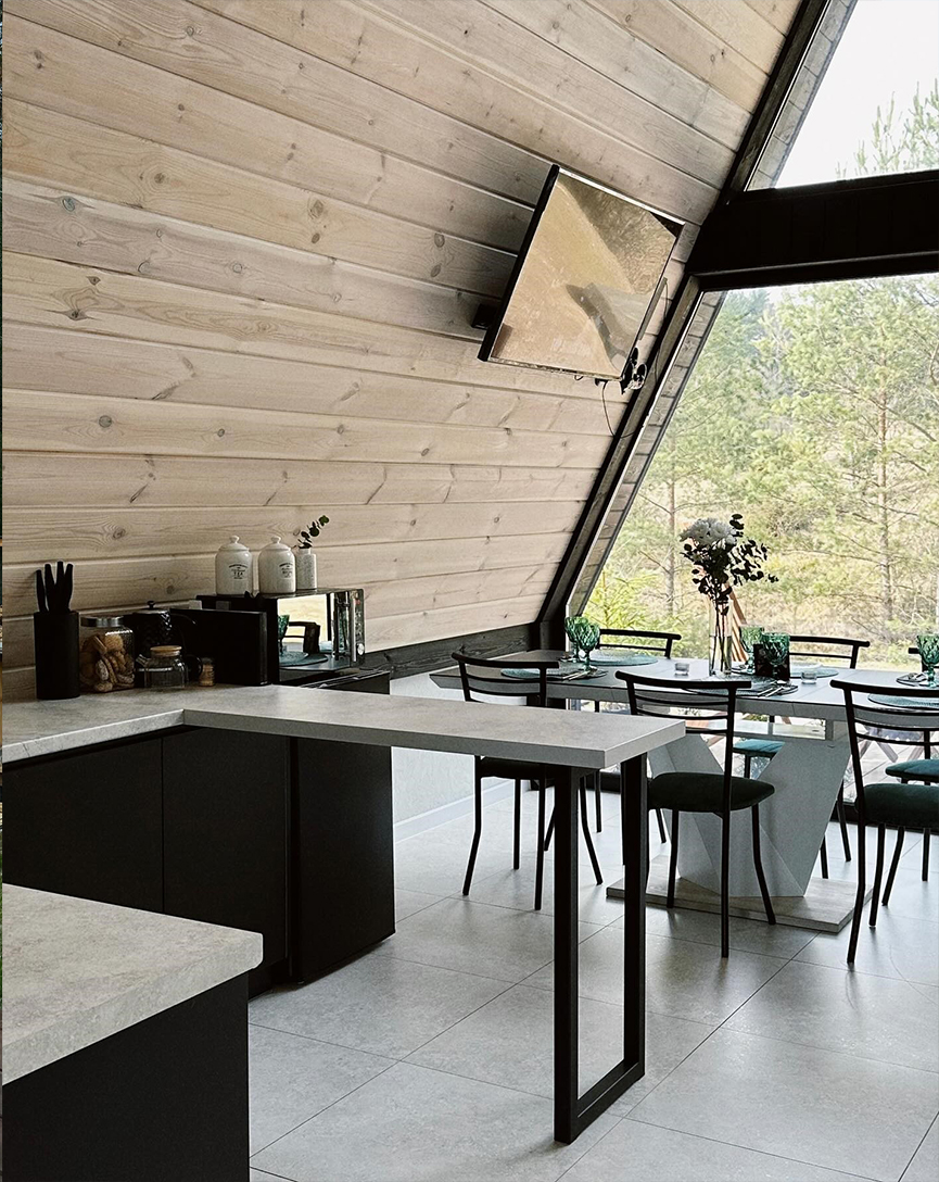 ✨Для вашего отдыха треугольный домик оборудован современной системой отопления. Кухня обустроена электроплитой, посудомоечной машиной, всей необходимой бытовой техникой.