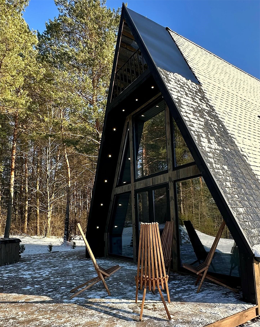 🎈👉Отличительная черта а-frame дома — 3 жилых этажа, 130 квадратов максимально уютной и полезной площади для вашего отдыха. В доме предусмотрено 5 спальных мест (рассчитано на 10 человек), комфортное пребывание в доме до ~ 16 гостей.