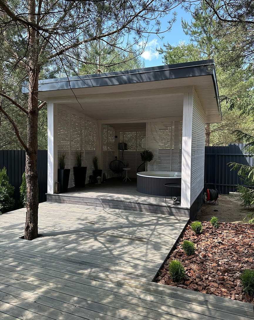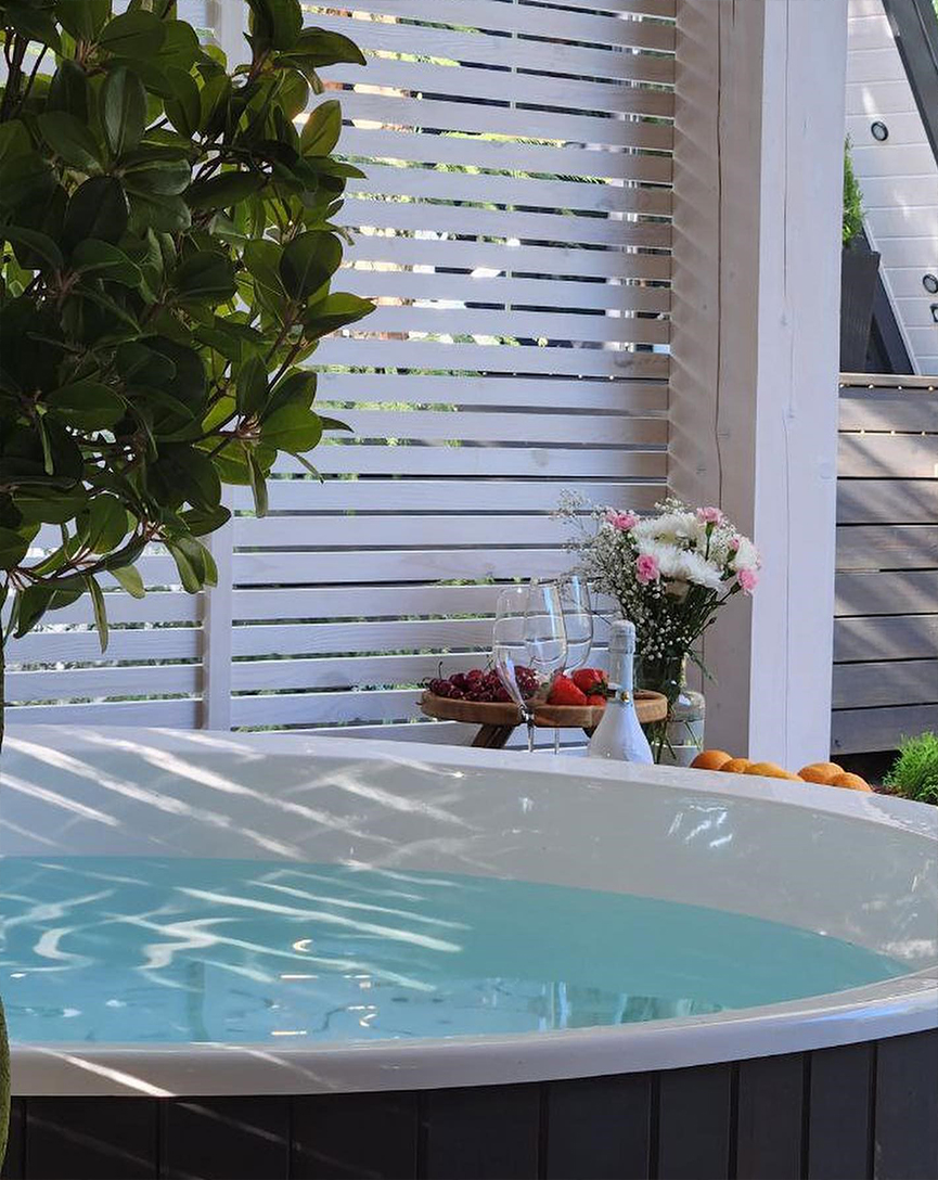 🍀Купель, встроенная в террасу дома, с подсветкой (хромотерапия) и гидромассажем;