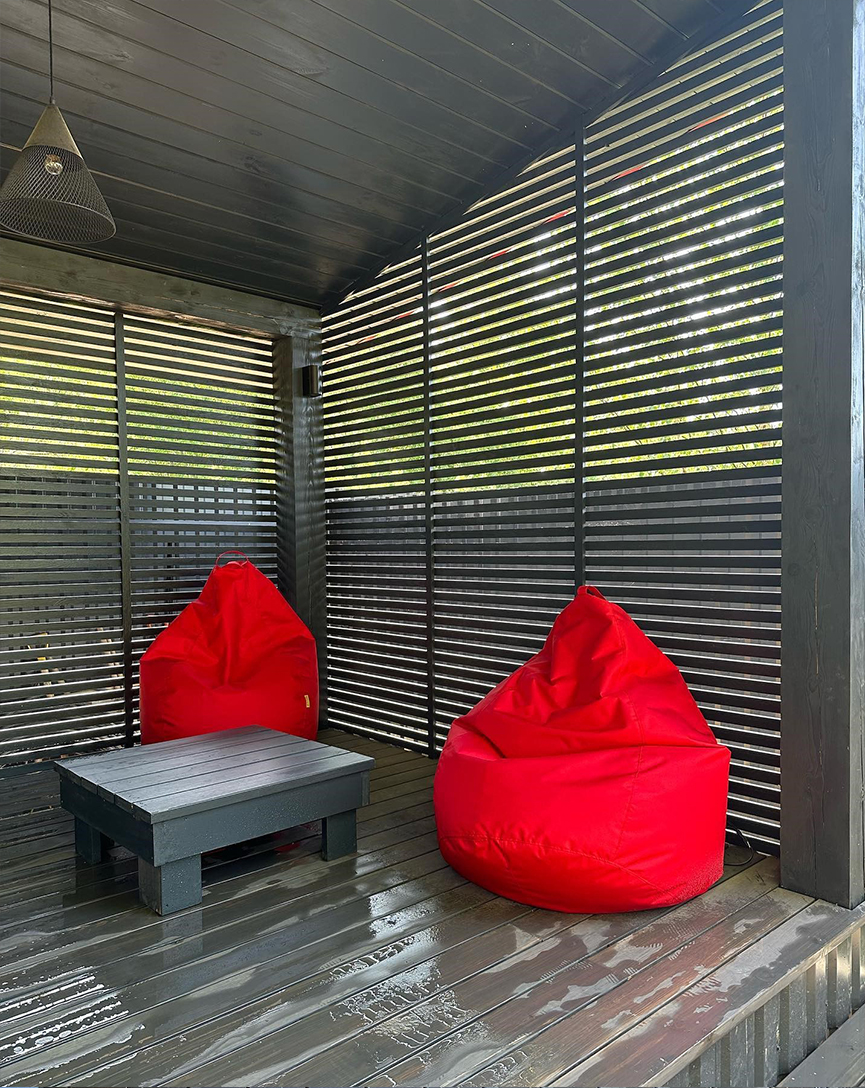 🍀Отдельно стоящая большая беседка с барной стойкой и качелями вместо барных стульев и релакс зоной с креслами-мешками.